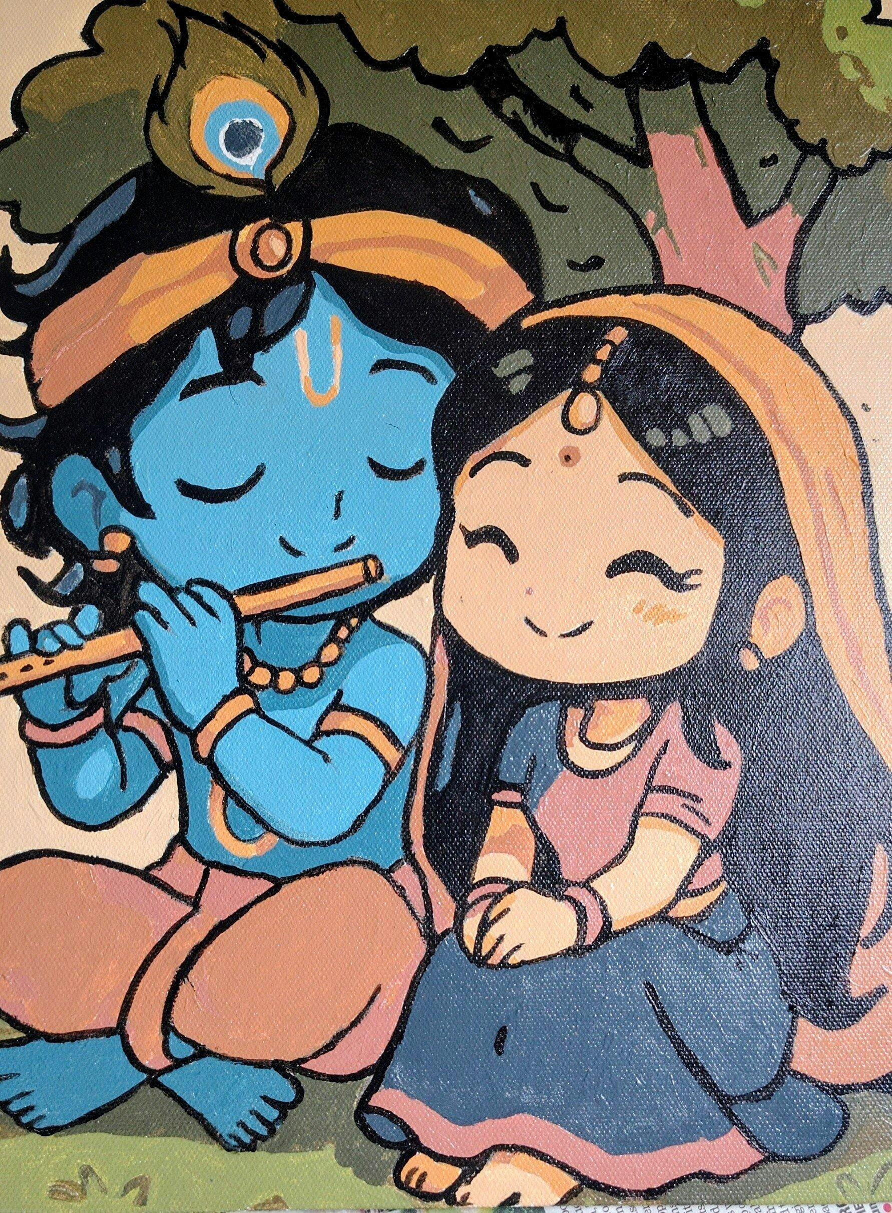 Paint By Number Kit is a type of D.I.Y (Do It Yourself) which offers an enjoyable and straightforward method for crafting artwork. Bal Radha Krishna artwork is divided into numbered sections on canvas (pre-marked canvas), and by matching the provided paints to these numbers, you gradually complete the painting with precision and ease.
