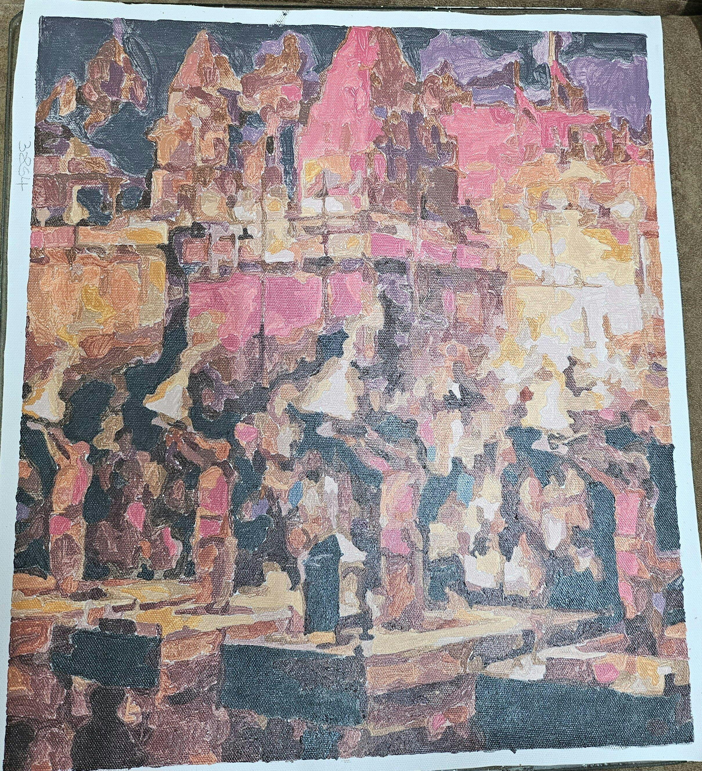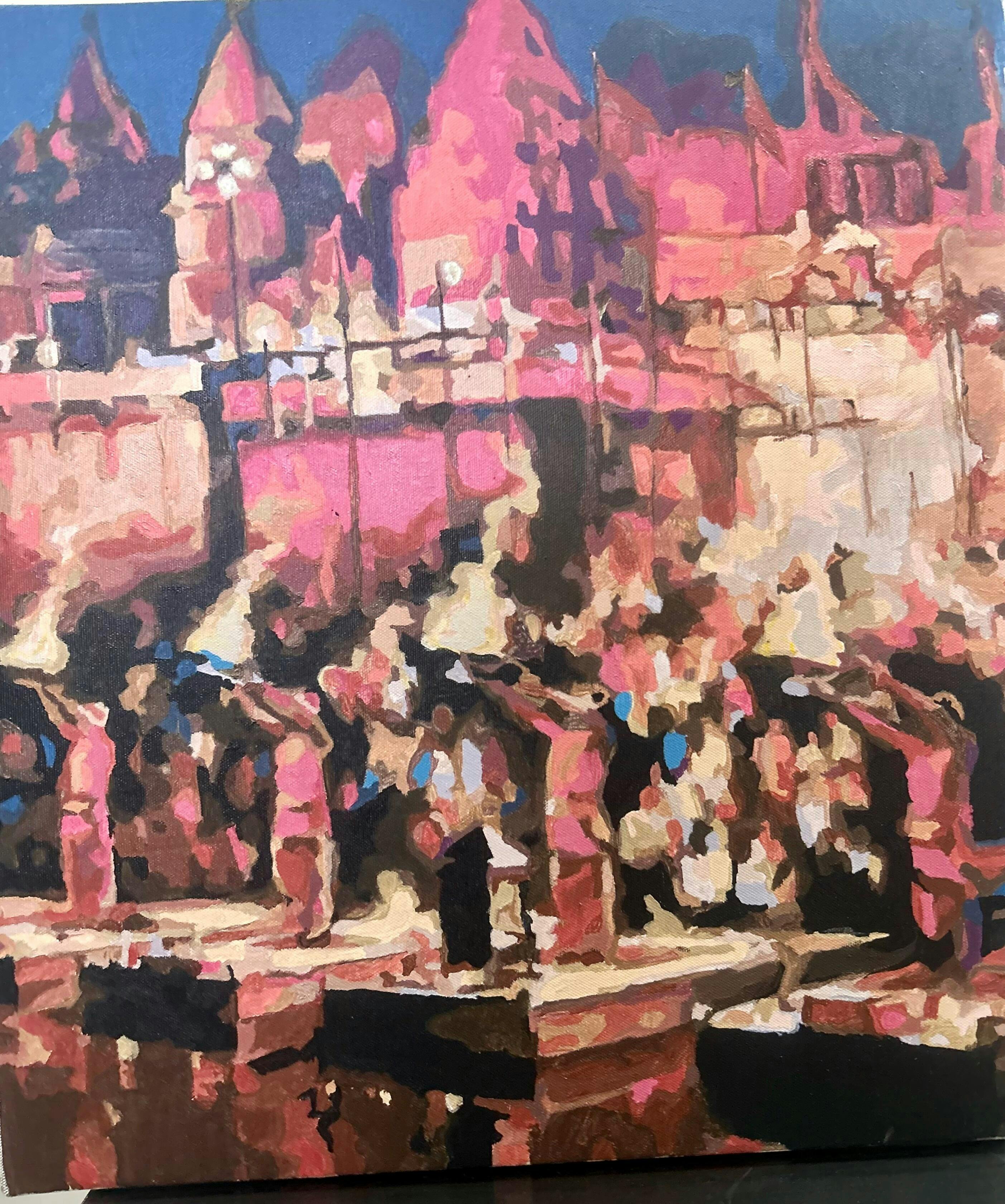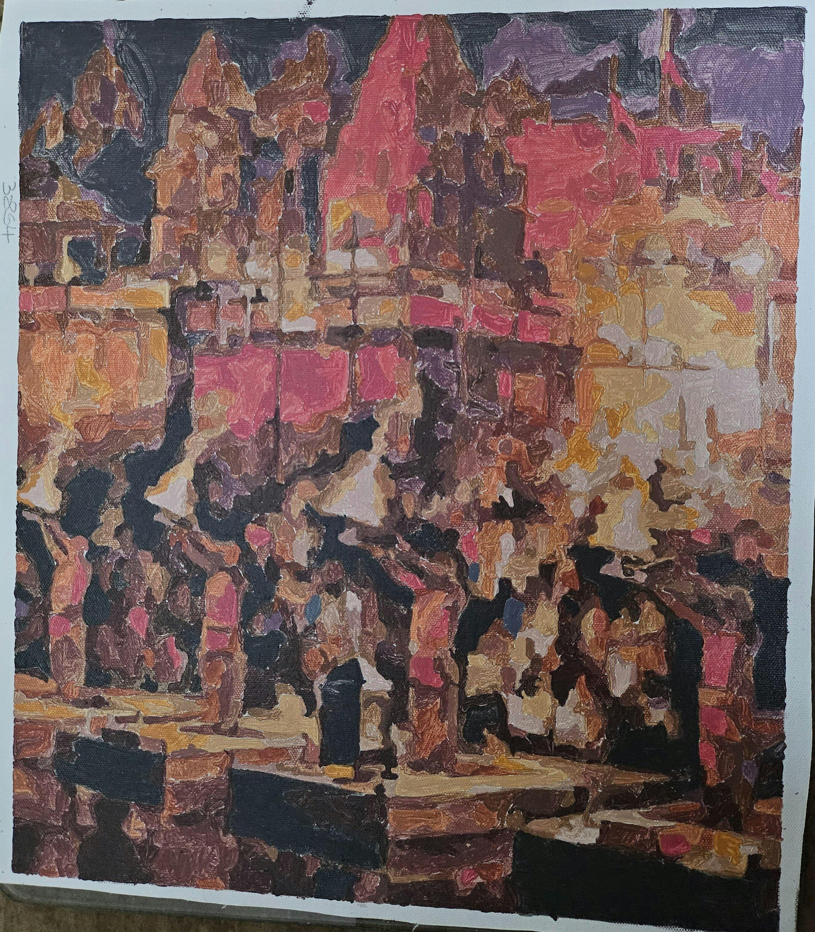 Paint By Number Kit is a type of D.I.Y (Do It Yourself) which offers an enjoyable and straightforward method for crafting artwork. Ganga Aarti Night View artwork is divided into numbered sections on canvas (pre-marked canvas), and by matching the provided paints to these numbers, you gradually complete the painting with precision and ease.