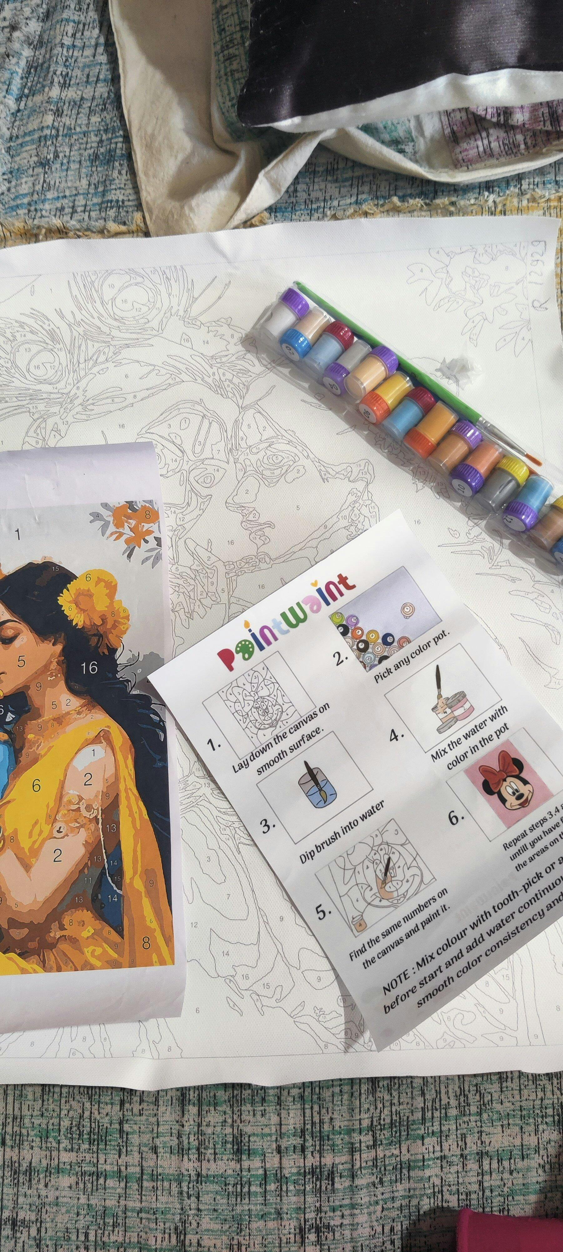 Paint By Number Kit is a type of D.I.Y (Do It Yourself) which offers an enjoyable and straightforward method for crafting artwork. Divine Melody Of Love Radha Krishna artwork is divided into numbered sections on canvas (pre-marked canvas), and by matching the provided paints to these numbers, you gradually complete the painting with precision and ease.