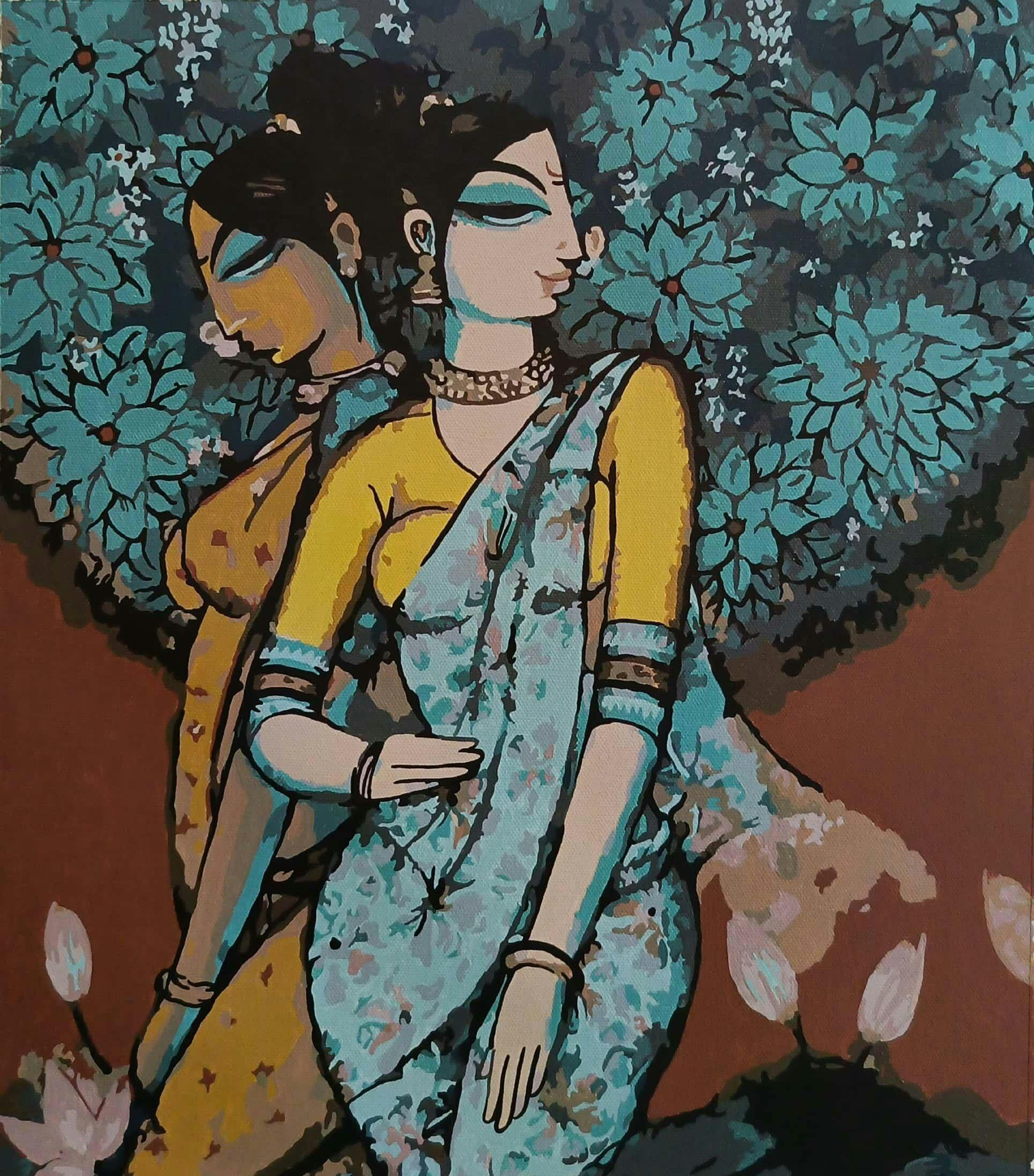 Paint By Number Kit is a type of D.I.Y (Do It Yourself) which offers an enjoyable and straightforward method for crafting artwork. Women in Saree artwork is divided into numbered sections on canvas (pre-marked canvas), and by matching the provided paints to these numbers, you gradually complete the painting with precision and ease.